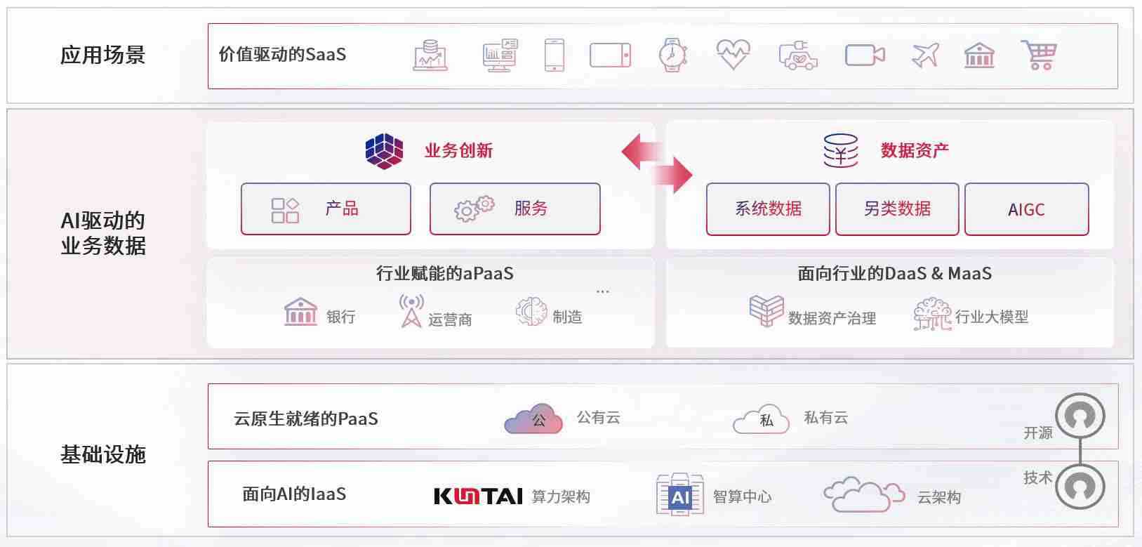 数字时代,,,,围绕企业数字化转型的关键要素,,,,GOPAY钱包数码开创性的提出数云融合战略和技术体系框架,,,,着力在云原生、、数字原生、、、AI原生和信创产业上架构产品和服务能力,,,,为处在不同数字化转型阶段的快消零售、、、、汽车、、、、金融、、、、医疗、、政企、、、、教育、、运营商等行业客户提供泛在的敏捷IT能力和融合的数据驱动能力,,,构建跨界融合创新的数字业务场景和新业务模式,,助力企业级客户建立面向未来的核心能力和竞争优势,,,全面推动社会的数字化、、、、智能化转型升级。。。